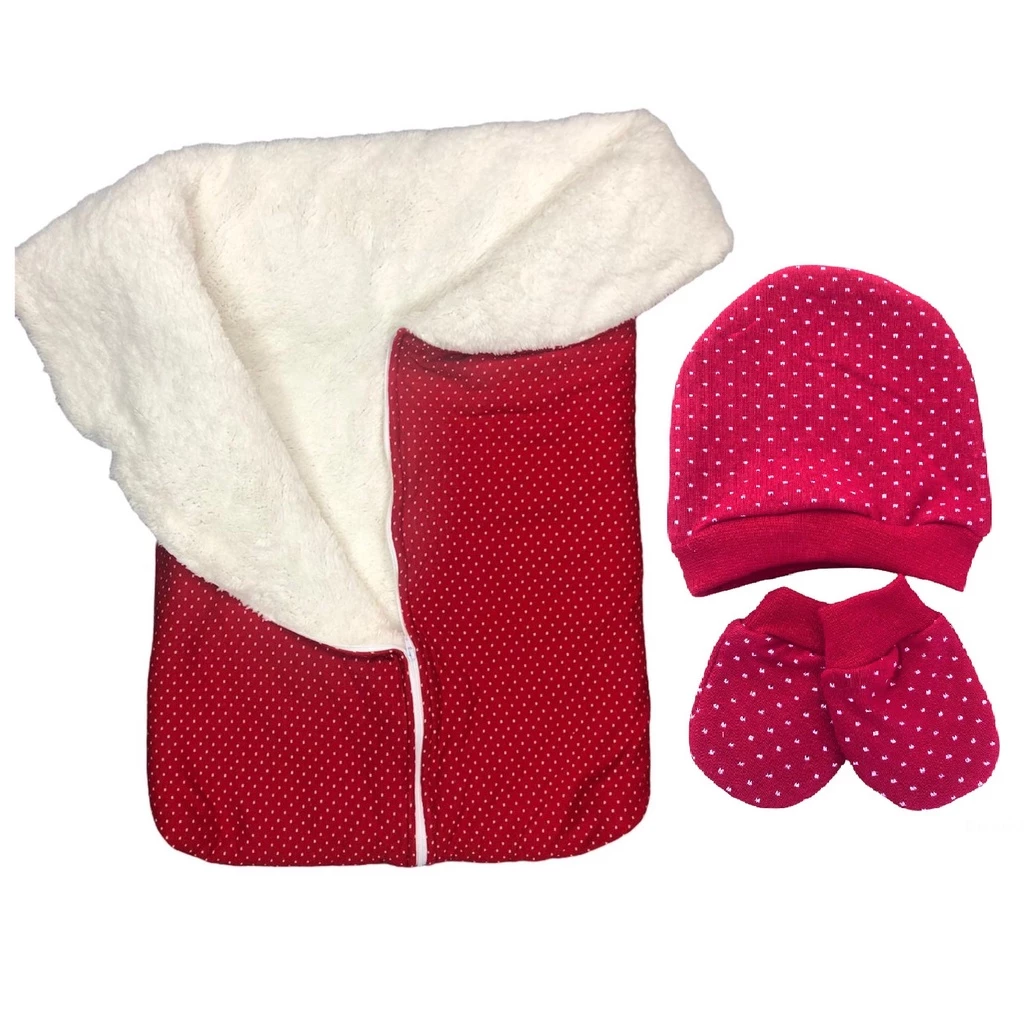 - Aquecimento: O conjunto de touca, luvas e saco de dormir mantém o bebê quentinho e protegido, oferecendo um toque macio e suave.